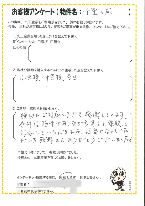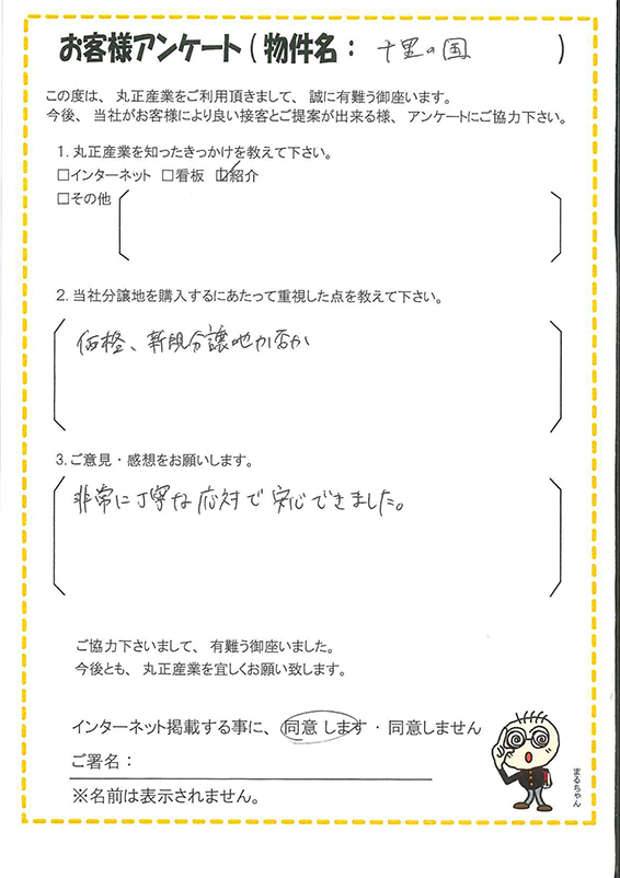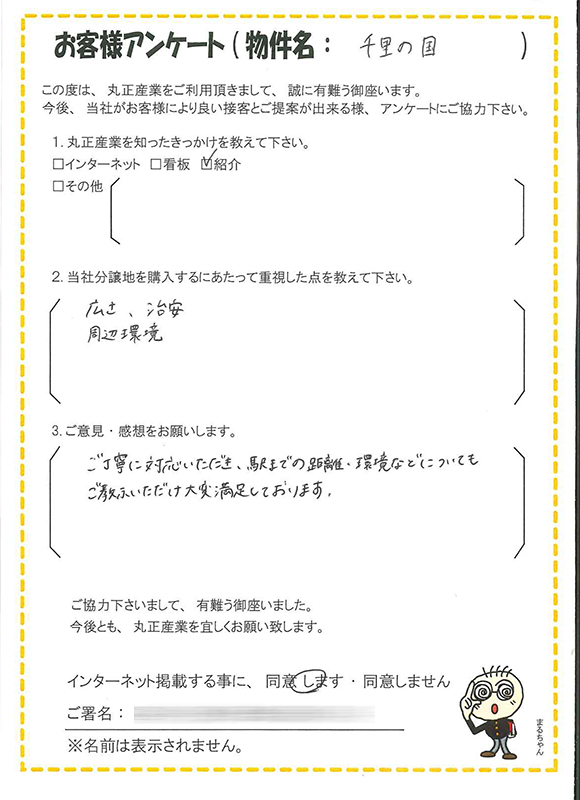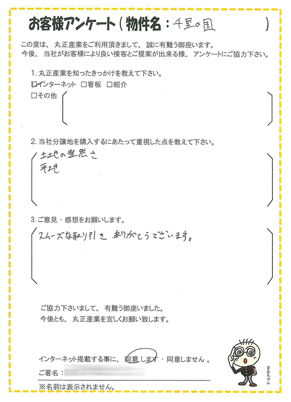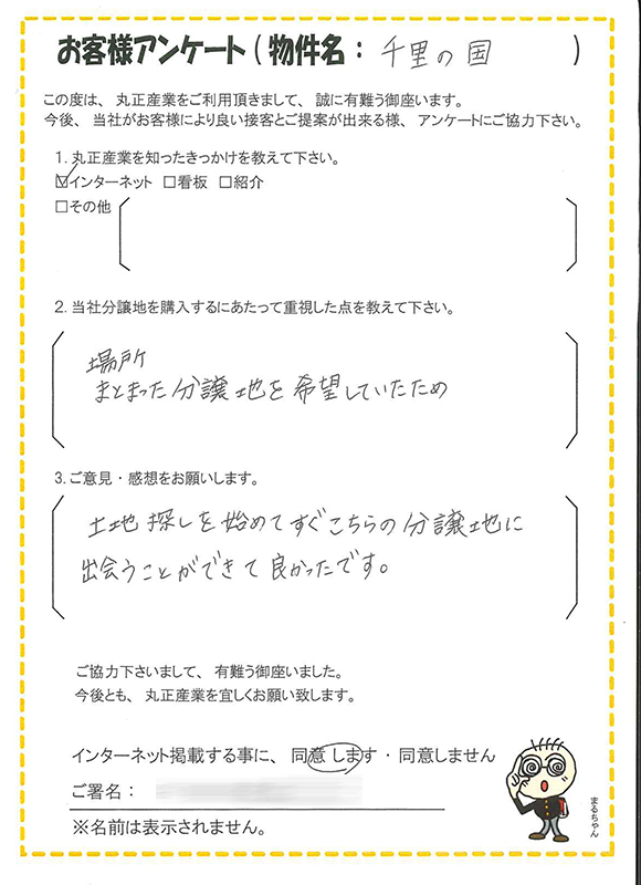土地選びで重要視されるポイントが「千里の国」に当てはまり本当に良かったです。