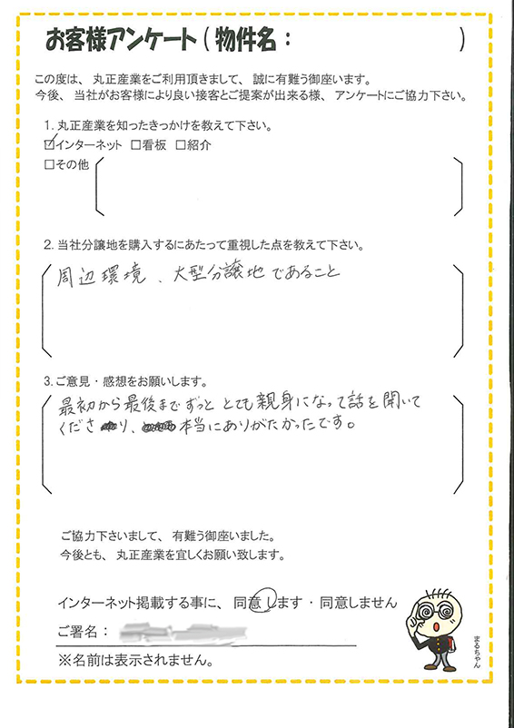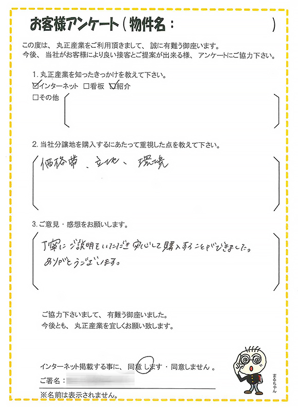この度は、当社分譲地を気に入って頂きましてありがとうございました。