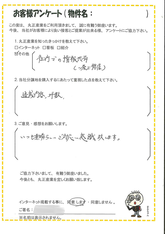 この度は、当社分譲地を気に入って頂きありがとうございました。